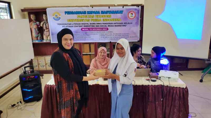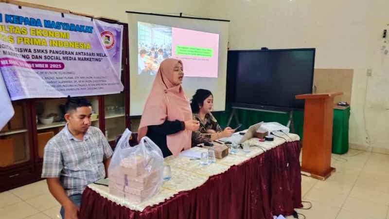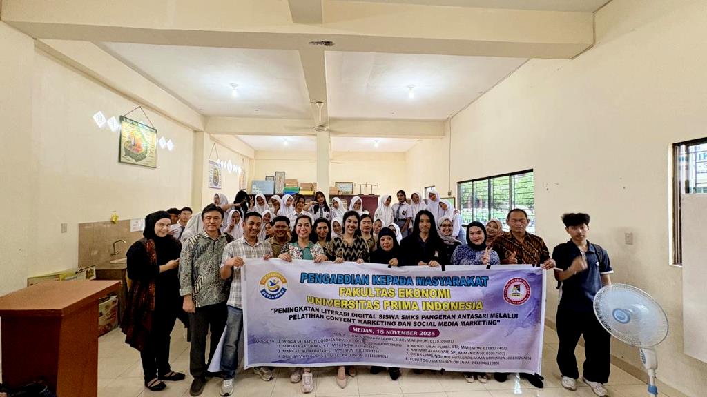 KampusMedan – Helvetia, Sejumlah Dosen Fakultas Ekonomi Universitas Prima Indonesia (FE UNPRI) sukses menggelar Pengabdian Kepada Masyarakat (PKM) di SMK Pangeran Antasari Medan yang berlokasi di Desa Helvetia Kecamatan Labuhan Deli, Kabupaten Deli Serdang, Selasa (18/11/2025). PKM tersebut mengusung topik Pelatihan Content Creator Marketing, Fintech dan SDM Unggul.