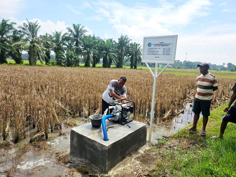 Dalam acara serah terima dengan Kelompok Tani Tani Abadi, yang diwakili oleh Ketua Kelompok Tani, Mizan mengatakan, dengan pembangunan irigasi perpompaan ini, mudah-mudahan bisa meningkatkan ketersediaan air sebagai suplesi pada lahan pertanian tanaman pangan dan hortikultura serta, bisa menambah aset berupa mesin pompa air untuk kelompok tani.