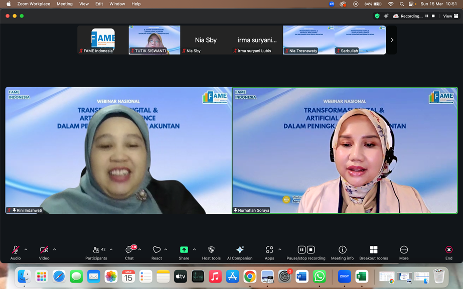 KampusMedan – Medan, Dewan Pimpinan Pusat Forum Akuntansi, Manajemen & Ekonomi (DPP FAME) Indonesia sukses menggelar Webinar Nasional bertajuk “Transformasi Digital dan Artificial Intelligence Dalam Peningkatan Peran Akuntan”, yang diselenggarakan Minggu (15/5/2026) secara daring, dan diikuti kurang lebih 60 orang peserta dari berbagai kota di Indonesia.