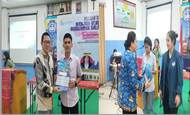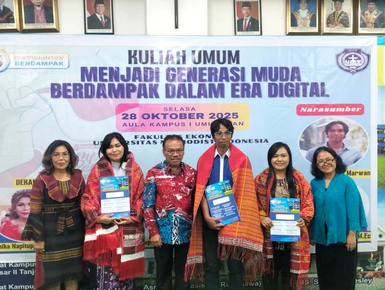 KampusMedan – Medan, Dalam memperingati dan memaknai semangat Hari Sumpah Pemuda, Fakultas Ekonomi Universitas Methodist Indonesia (FE UMI) menggelar Kuliah Umum “Menjadi Generasi Muda Berdampak Dalam Era Digital”, Selasa (28/10/2025) di Kampus UMI Jln.Hangtuah No 8 Medan, menghadirkan dua narasumber, yaitu Prof.Dr.Elisabet Siahaan,SE,MEc dari FEB USU dan Vice President Digital Experience Asosiasi Manajemen Indonesia (AMA) Chapter Medan, Marwan Syahputra.ST, dipandu Dr.Merry Anna Napitupulu,SE,MSi, Ak, CA, CSRA selaku moderator dan Epi Purba selaku MC.